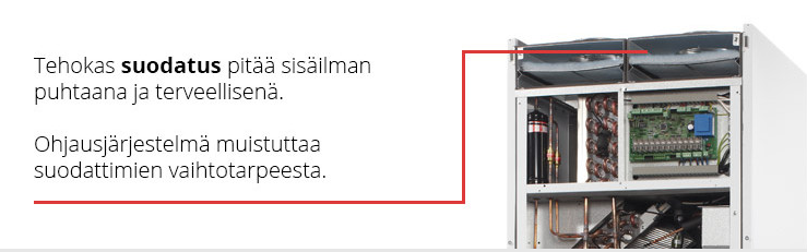 Laite on helppo sijoittaa esimerkiksi kodinhoitohuoneeseen, sillä se on kooltaan normaalin kaapin kokoinen. E-malli pystyy vaihtamaan ilmaa jopa 105 l/s ja se sisältää 180 litran käyttövesivaraajan. EC –mallissa pystyy lisäksi viilentämään tuloilmaa 6-10 astetta samalla hyödyntäen tuloilman lämpöenergiaa käyttöveden lämmitykseen.